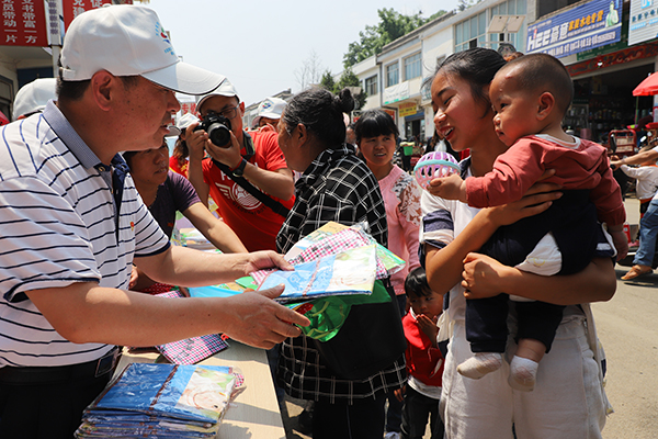 4月25日是“全国儿童预防接种日”,今年的宣传主题为“防控传染病.接种疫苗最有效”。水城县疾病预防控制中心及营盘乡卫生院相关工作人员在营盘乡营盘街上(高峰村卫生室门前)进行了预防接种知识宣传活动。