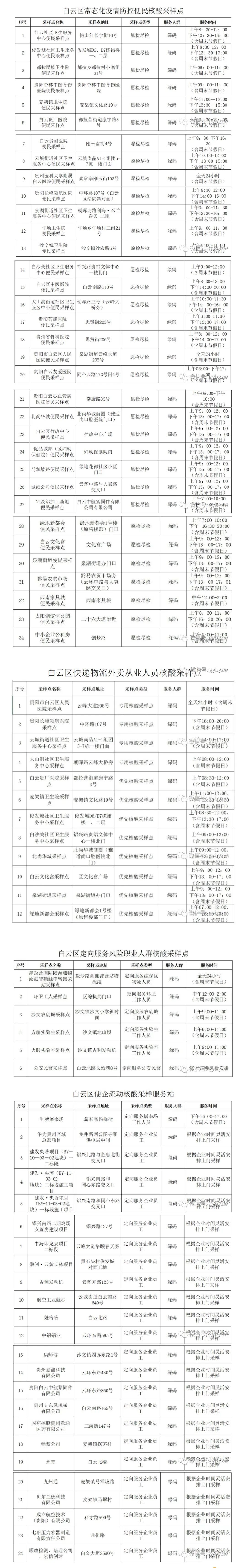 完成核酸采样后,“健康码”将在24小时内恢复绿码。白云区设置了64个便民核酸采样点(详细地点见附表),为市民提供免费混检服务。