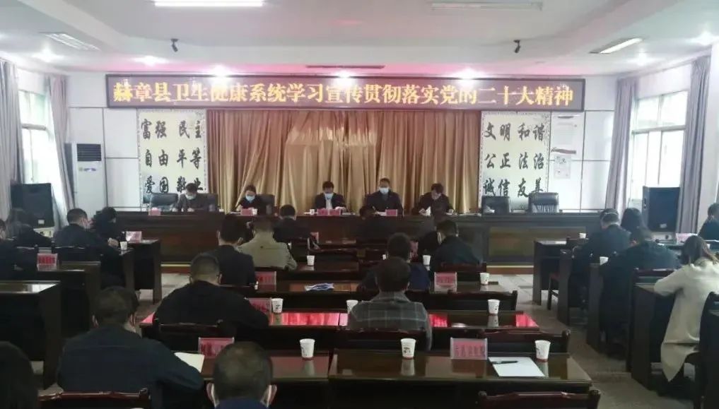 会议要求,学习宣传贯彻党的二十大精神,是全县卫生健康系统当前和今后一个时期的首要政治任务和头等大事。系统各单位要切实把思想和行动统一到党中央、省委、市委和县委的部署要求上来,不断增强“四个意识”、坚定“四个自信”、做到“两个维护”,强化组织领导,周密安排部署,迅速掀起学习宣传贯彻党的二十大精神的热潮。要有力推进学习,领导干部带头深入系统各单位开展宣讲宣传,组织引导党员干部和广大干部职工第一时间学、“原汁原味”学、逐字逐句学,推动党的二十大精神入脑入心,确保党的二十大精神在卫生健康系统落地生根、见到实效。要围绕中心、服务大局,找准学习宣传贯彻落实的切入点和着力点,坚决落实好“疫情要防住、经济要稳住、发展要安全”的重要要求,把学习党的二十大精神转化为推动健康赫章建设的强大动力,系统全体干部职工要在党的领导下,心往一处想、劲往一处使,奋力开创卫生健康事业发展新局面。