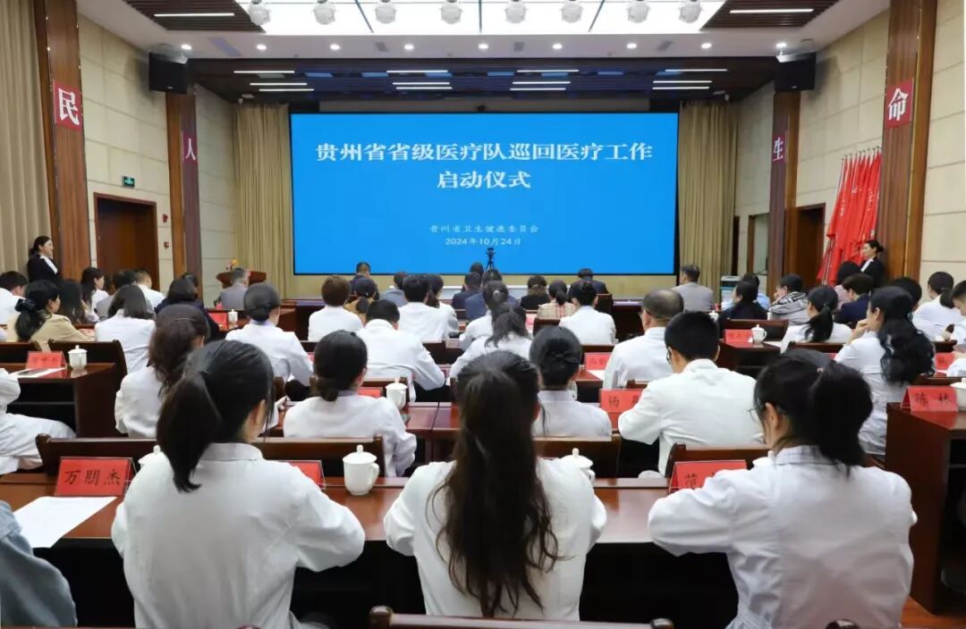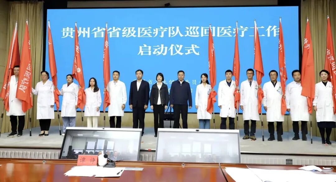 启动仪式上,谭诤看望慰问医疗队队员代表,为在筑省级医院医疗队授予“贵州省巡回医疗队”队旗,并向广大医务人员致以崇高敬意。她表示,做好巡回医疗是贯彻落实党的二十大和二十届三中全会精神,以及省委十三届五次全会工作部署,促进优质医疗资源扩容下沉和区域均衡布局的重要举措,要通过巡回医疗将优质医疗服务带到人民群众身边,提升受援地区医务人员技术水平、医院管理水平,探索路径,积累经验,进一步谋划推动优质医疗资源向城乡基层下沉延伸。