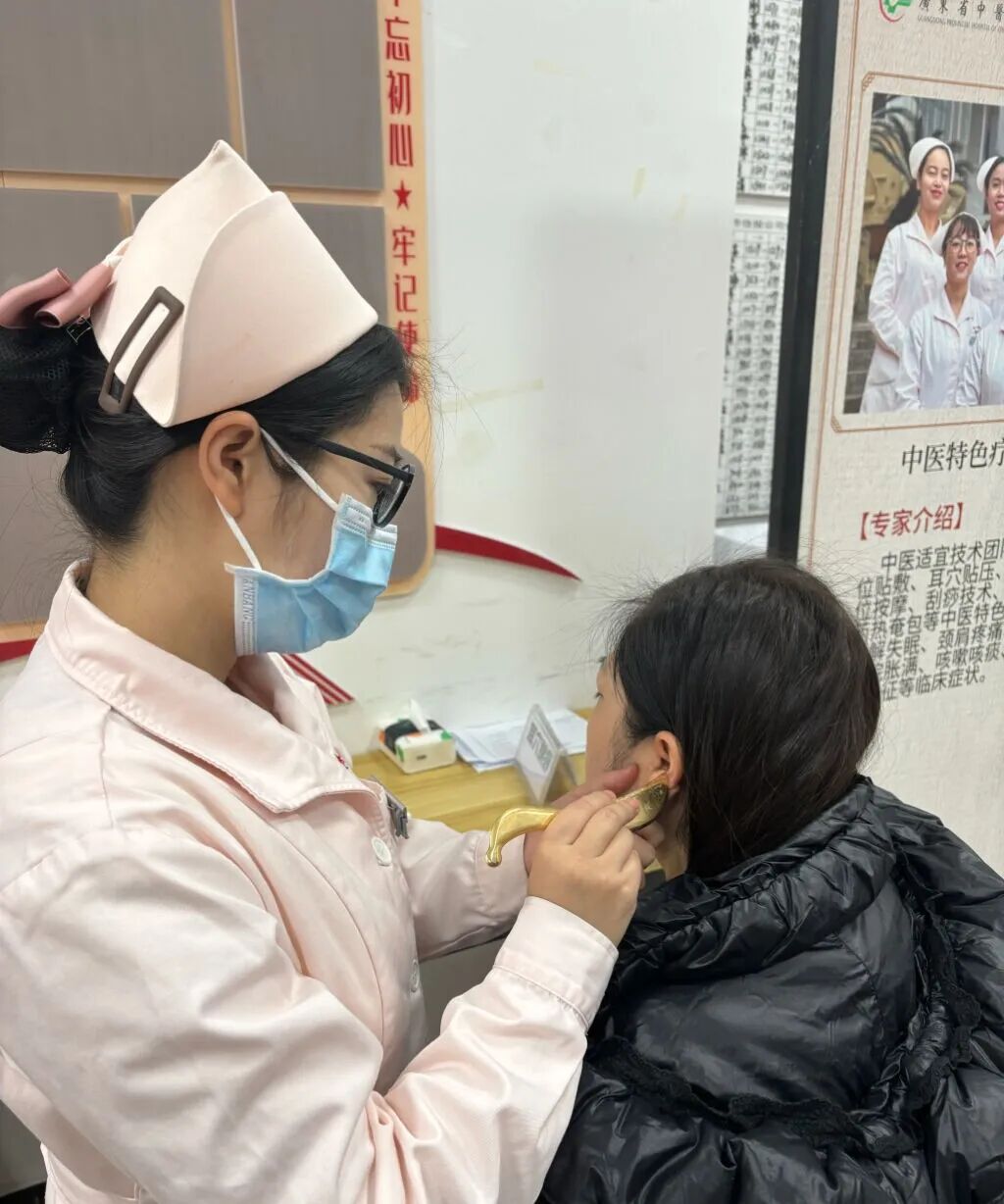 专家们为前来的群众把脉、听诊,并仔细询问既往病史和日常生活习惯,事无巨细,面面俱到。除了免费提供专家咨询外,贵州医院的医护人员还为群众测量血压血糖、进行中医治疗。穴位贴敷、温通刮痧、中药热奄包、耳穴贴压、艾灸等丰富多元、立竿见影的中医特色疗法受到了许多群众的欢迎。