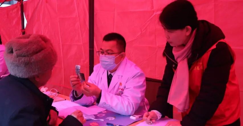 冷空气抵挡不了当地居民看名医的热情。上午8时许,现场问诊群众就排起了长队,周围的志愿者们贴心地为他们准备了凳子、姜茶以及取暖设备,并逐一询问登记在册,引导其到相应的专家就诊台问诊。