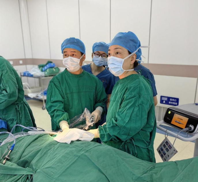 安妮妮主任医师、吴谋东主治医师正在为患儿手术