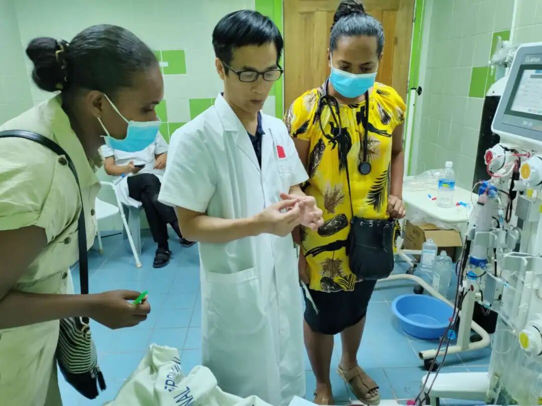 与此同时,第2批援所中国医疗队肾内科、检验科专家还通过手术带教、临床培训、平移理念等方式帮助所方相关专业提能力、育人才,进一步夯实发展基础。肾内科专家颜润对当地医护进行血液透析理论及实践培训73次,目前肾脏病团队护士已经能熟练操作血液透析机器,团队上级医生已初步掌握血液透析中心静脉临时导管置入。检验学专家黄海积极投身检验科临床分子检测工作,援助所方开展相关调研,发表健康科普文章4篇。