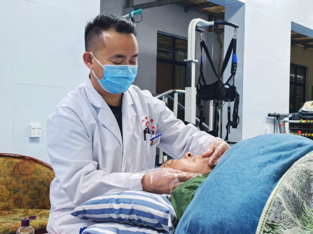 榕江县中医院康复师在给患者做治疗。(榕江县中医院 赖如希)