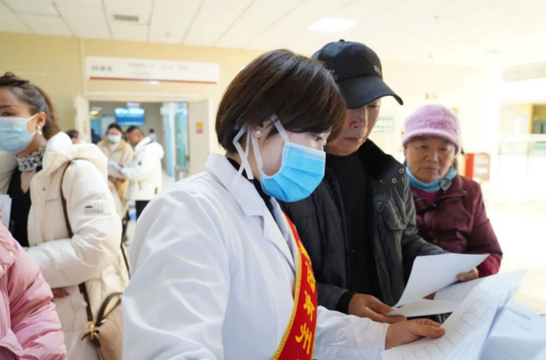 黔西南州人民医院党员志愿者为患者提供就诊指引。(黔西南州人民医院 王璟)