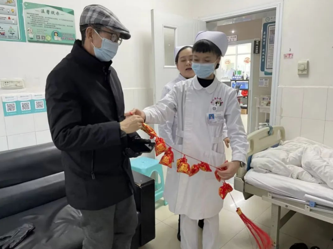 节日期间,独山县人民医院心内科医护人员为住院患者送上新春祝福。(独山县人民医院)