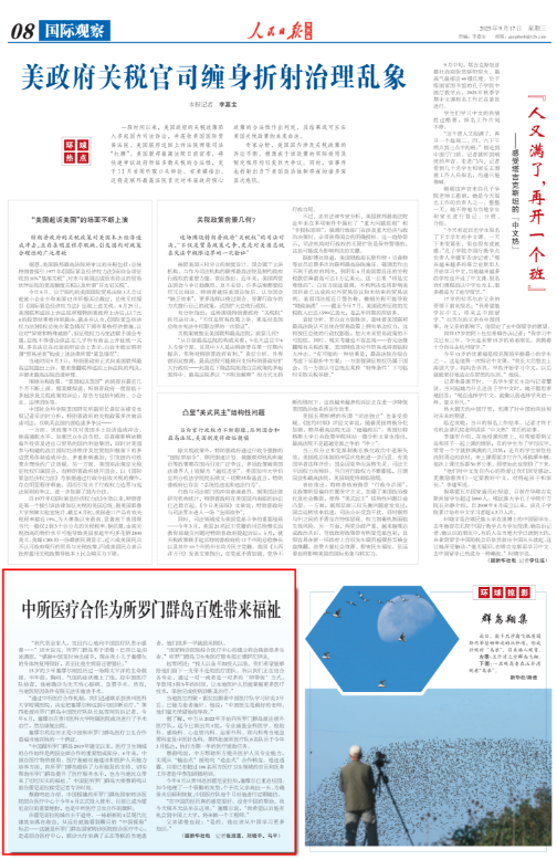 9月17日,《人民日报》海外版发表标题为《中所医疗合作为所罗门群岛百姓带来福祉》文章。关注我国6年来,在医疗物资援助、医疗基础设施建设和医护人员能力培养方面,向所罗门群岛提供了力所能及的支持,切实帮助所罗门群岛提升了医疗服务水平,也为当地民众带来了切切实实的福祉。具体报道如下:
