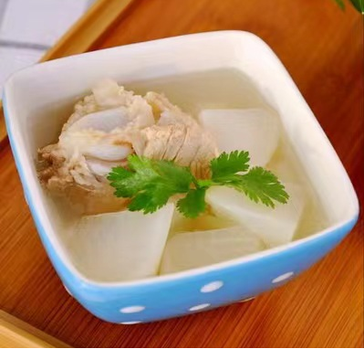 春吃萝卜夏吃姜。萝卜是小人参,尤其是做汤营养好。骨棒上没有太多的油腻,用来做萝卜汤很不错。汤清淡又可口。白萝卜含芥子油、淀粉酶和粗纤维,具有促进消化,增强食欲,加快胃肠蠕动和止咳化痰的作用。中医也认为该品味辛甘,性凉,入肺胃经,为食疗佳品,可以治疗或辅助治疗多种疾病。