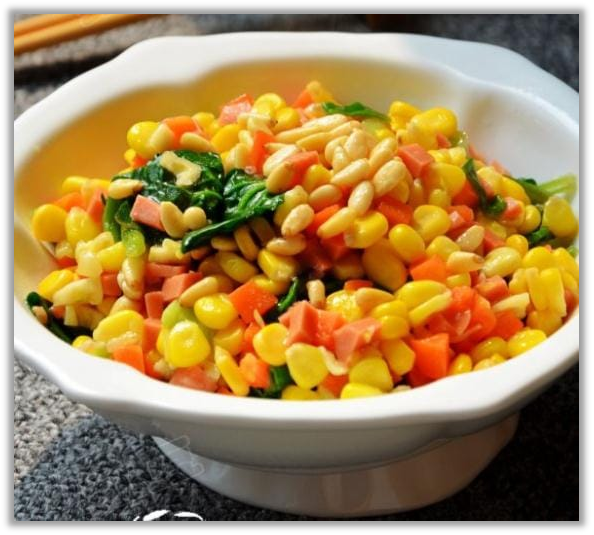菠菜可以疏通血脉,有利五脏,还有排毒,防春燥的作用,是春分时节饮食养生的首选蔬菜。搭配了玉米和胡萝卜,不仅补充多种维生素,还可以补益肝脏,提高机体抵抗力,更有防春燥的功效,是非常适合老人和孩子的一道春季养生菜。