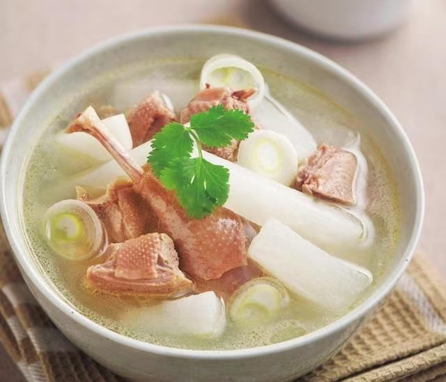 功效:鸭肉性凉,具有滋阴养胃、利水消肿的功效,白萝卜有清热生津、消食化痰的作用,适合秋季食用。