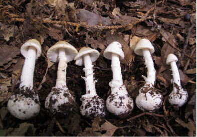 除了上述长有“菌盖、菌环、菌托”的鹅膏类蘑菇可能有毒,无“菌盖、菌环、菌托”蘑菇也可能有毒。因此:不要随意采食野生蘑菇!绝对不要采食“头上戴帽(有菌盖)、腰间系裙(有菌环)、脚上穿鞋(有菌托)”的野生蘑菇!